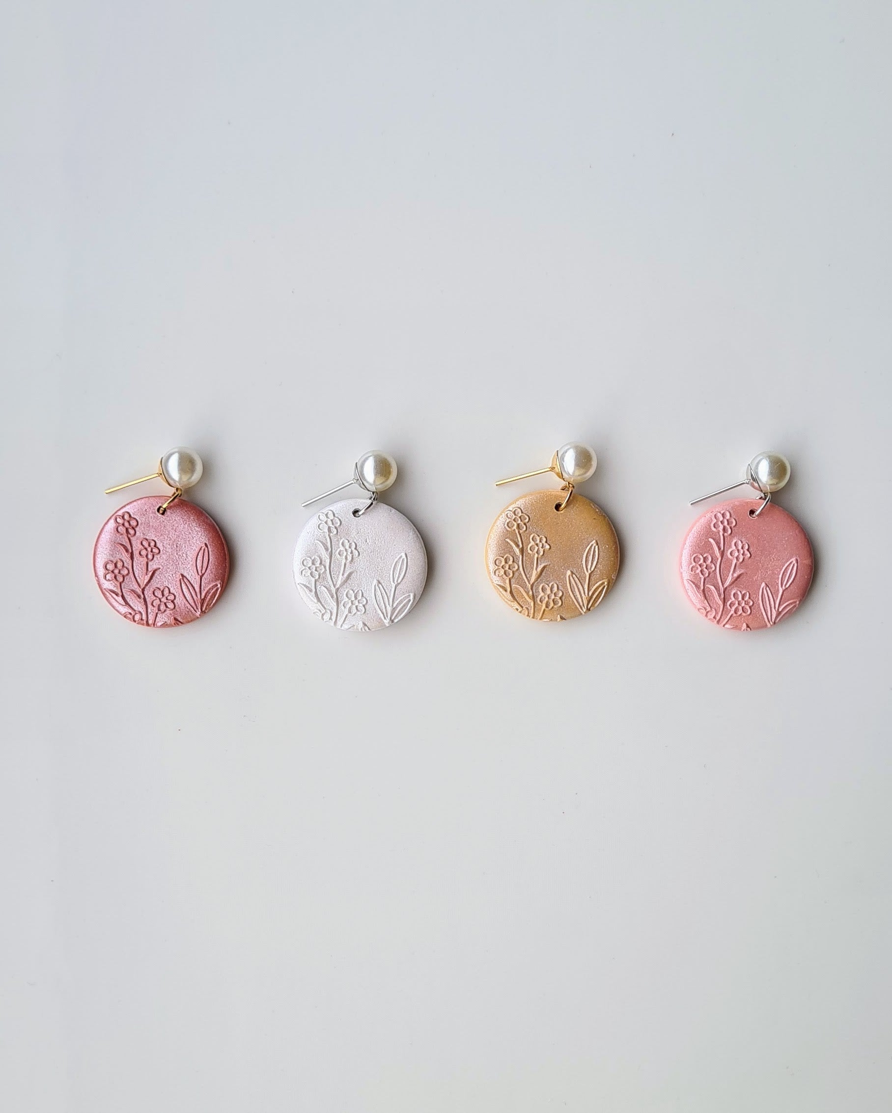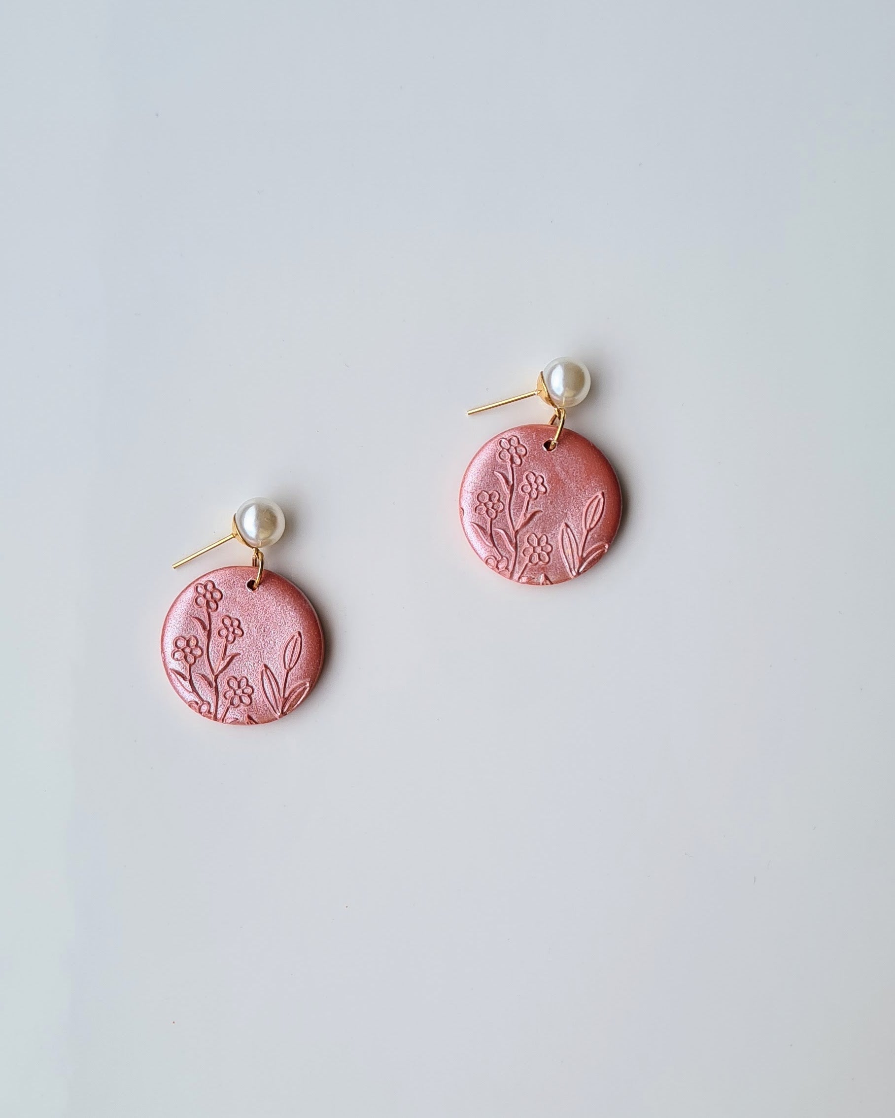 Inspired by the natural beauty of blooming flowers and the timeless allure of pearls, these earrings are handcrafted from polymer clay and finished with a soft, pearlescent shimmer. Adorned with an ethically sourced faux pearls — cruelty-free and ocean-friendly — they bring a graceful touch of elegance to any look.